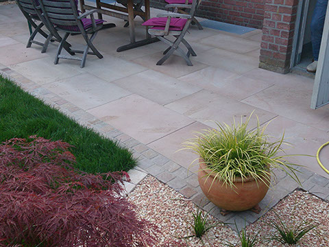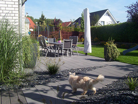 Uns ist keine Fläche zu klein und selten eine zu groß. Für große Flächen ist ein Pflasterung mit Industriesteinen besonders geeignet. Fachmännisch