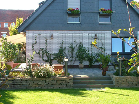 Das Erscheinungsbild der Firma und die Gebäude werden in die Auswahl der Pflanzen und die Gestaltung der Pflanzflächen mit einbezogen. Denken Sie daran, der erste Eindruck, den Ihre